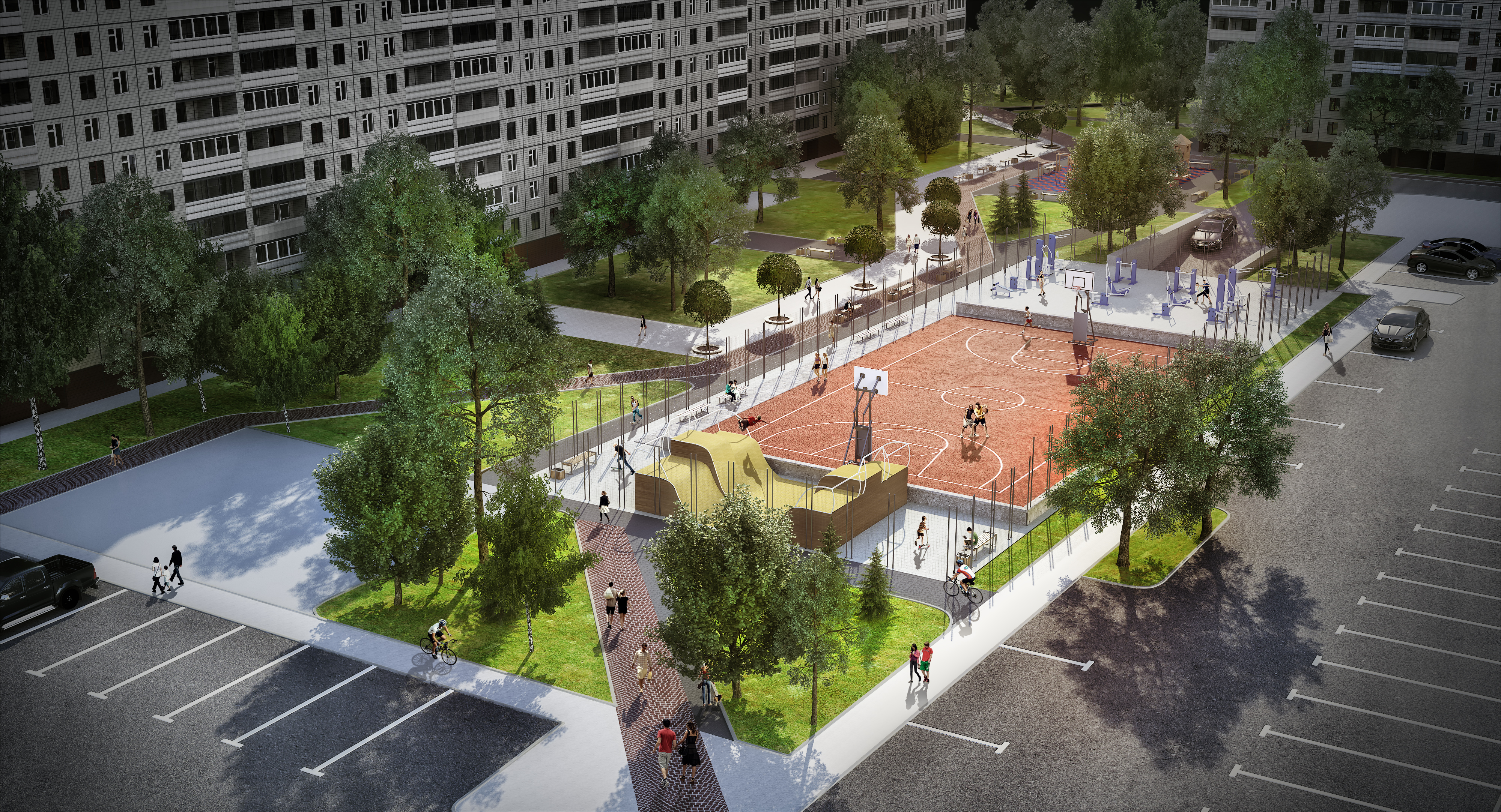 We've worked on project about reconstructing green space built 20 years ago and need to be refurbished with playground etc. So that's the result on it.