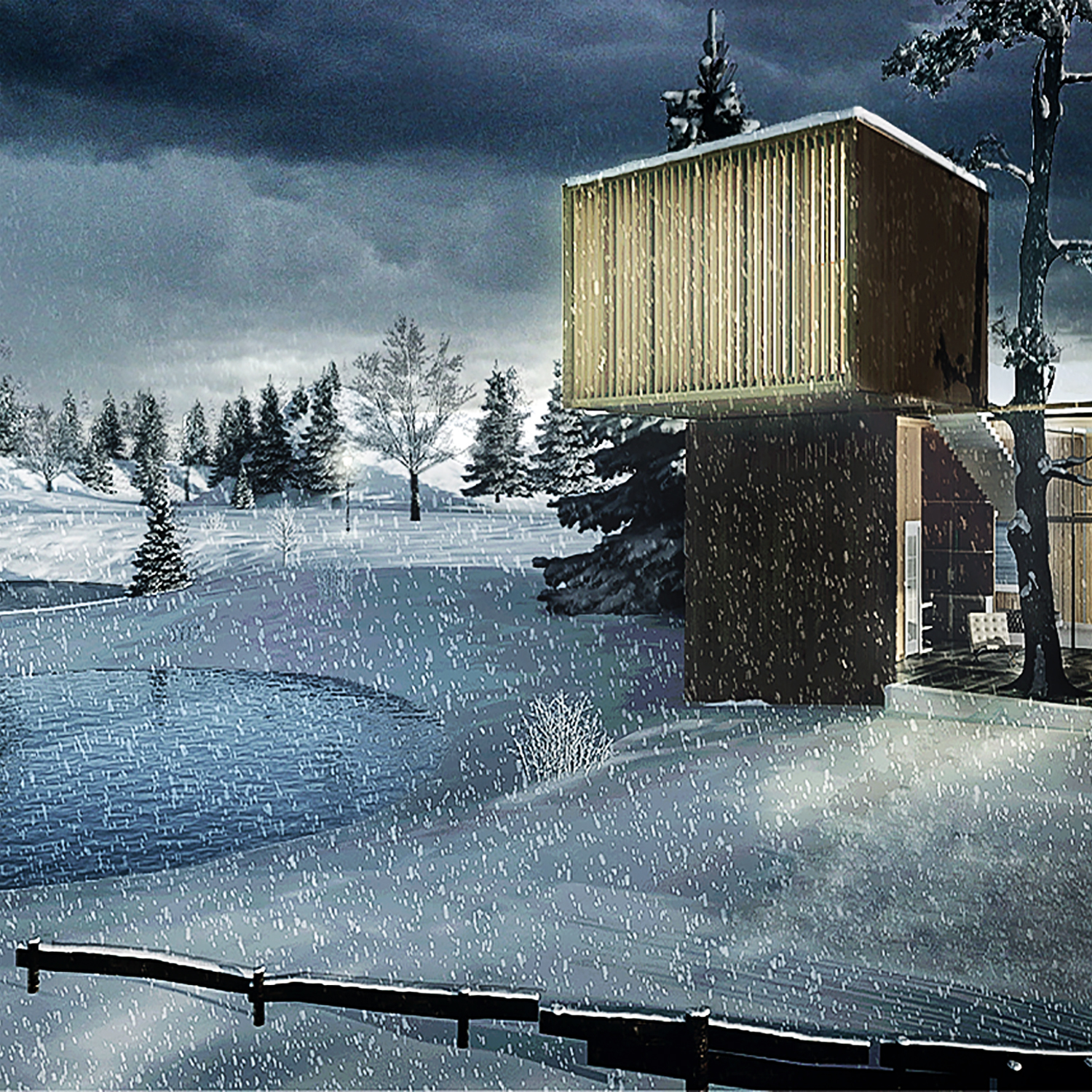 exterior with snow and the lake is the name!