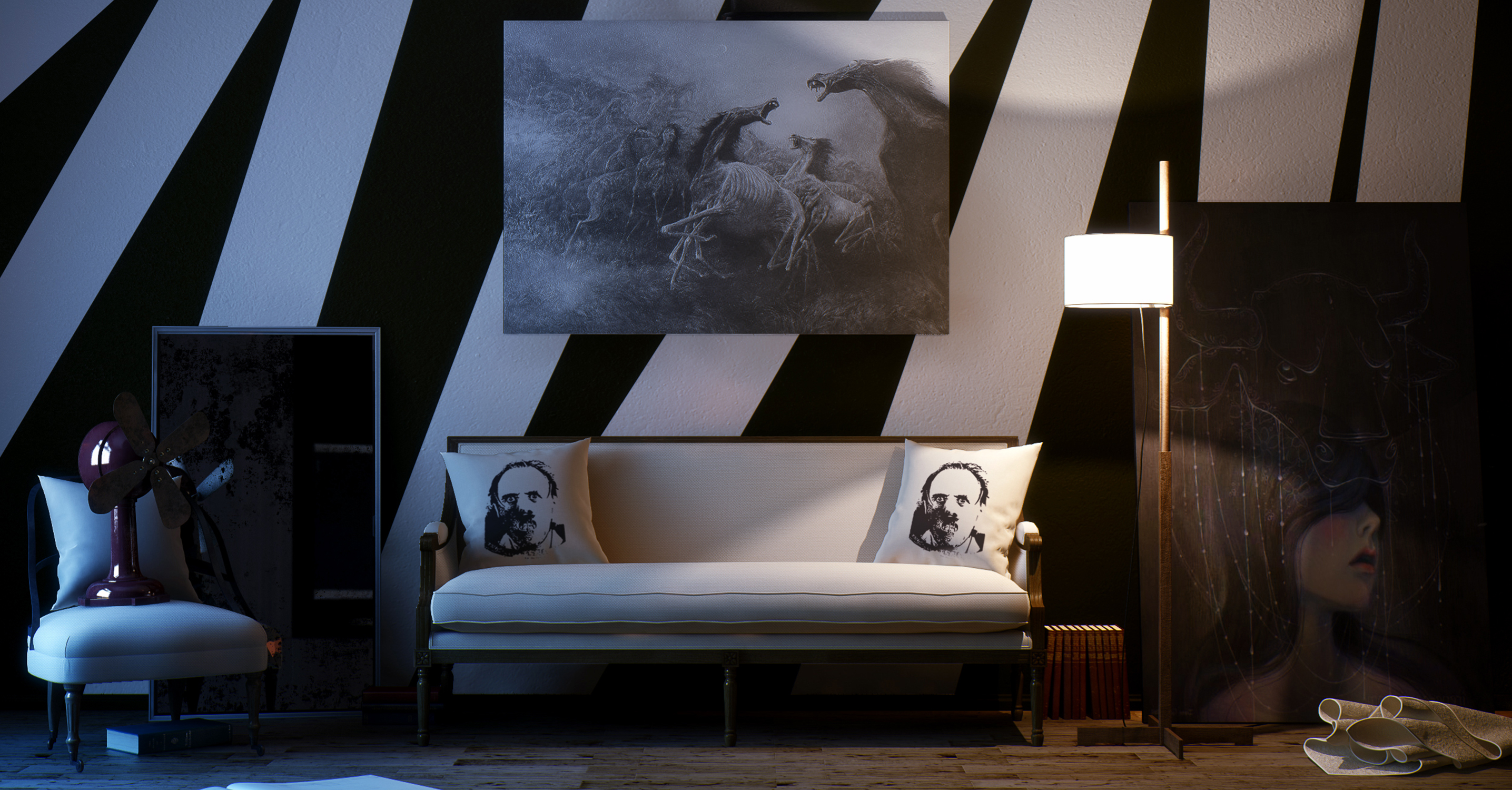 This is a personal project, the idea was to create a reading environment, little messy, dark and comfortable at the same time, mixing cold and warm colors, hope you enjoy.