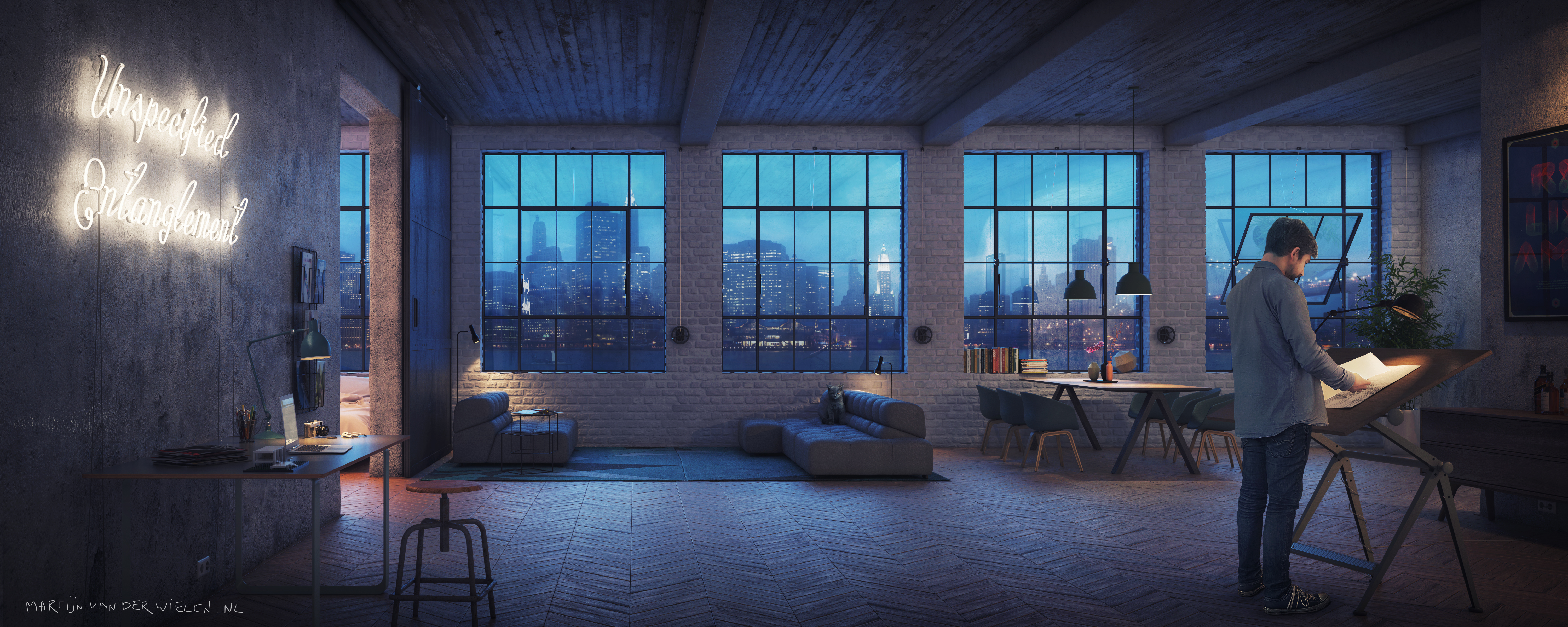 A personal project I did, 3d visualisation of an architect's loft in NYC. 3dsmax/vray/photoshop
