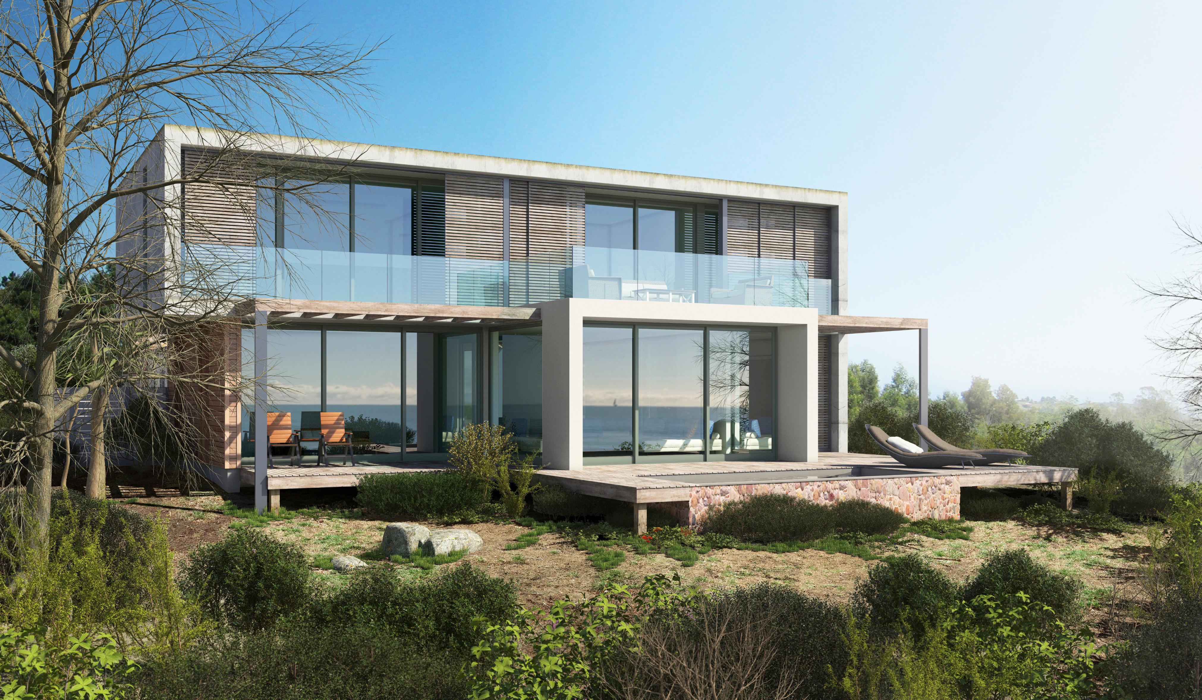 I designed this house as part of a set of design guidlines for a coastel housing development. The 3d modeling and rendering was done by myself.