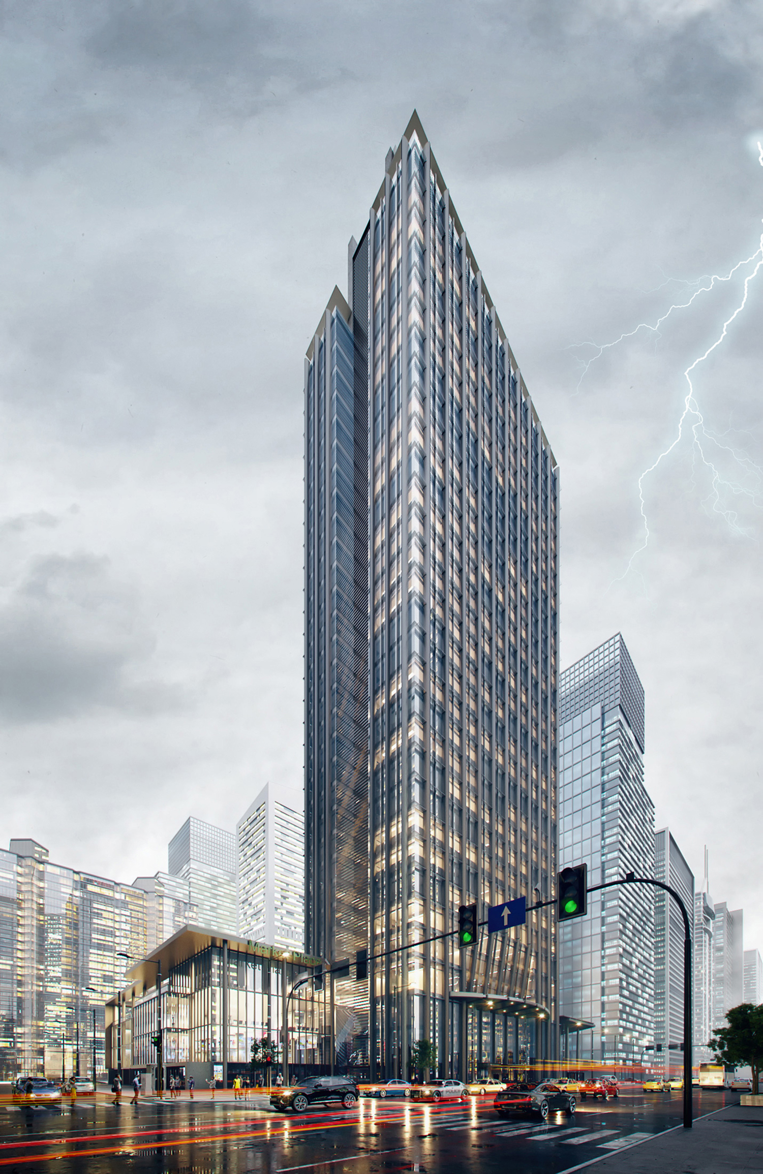 Tower of Glass. A residential commercial complex, a combination of concrete and glass