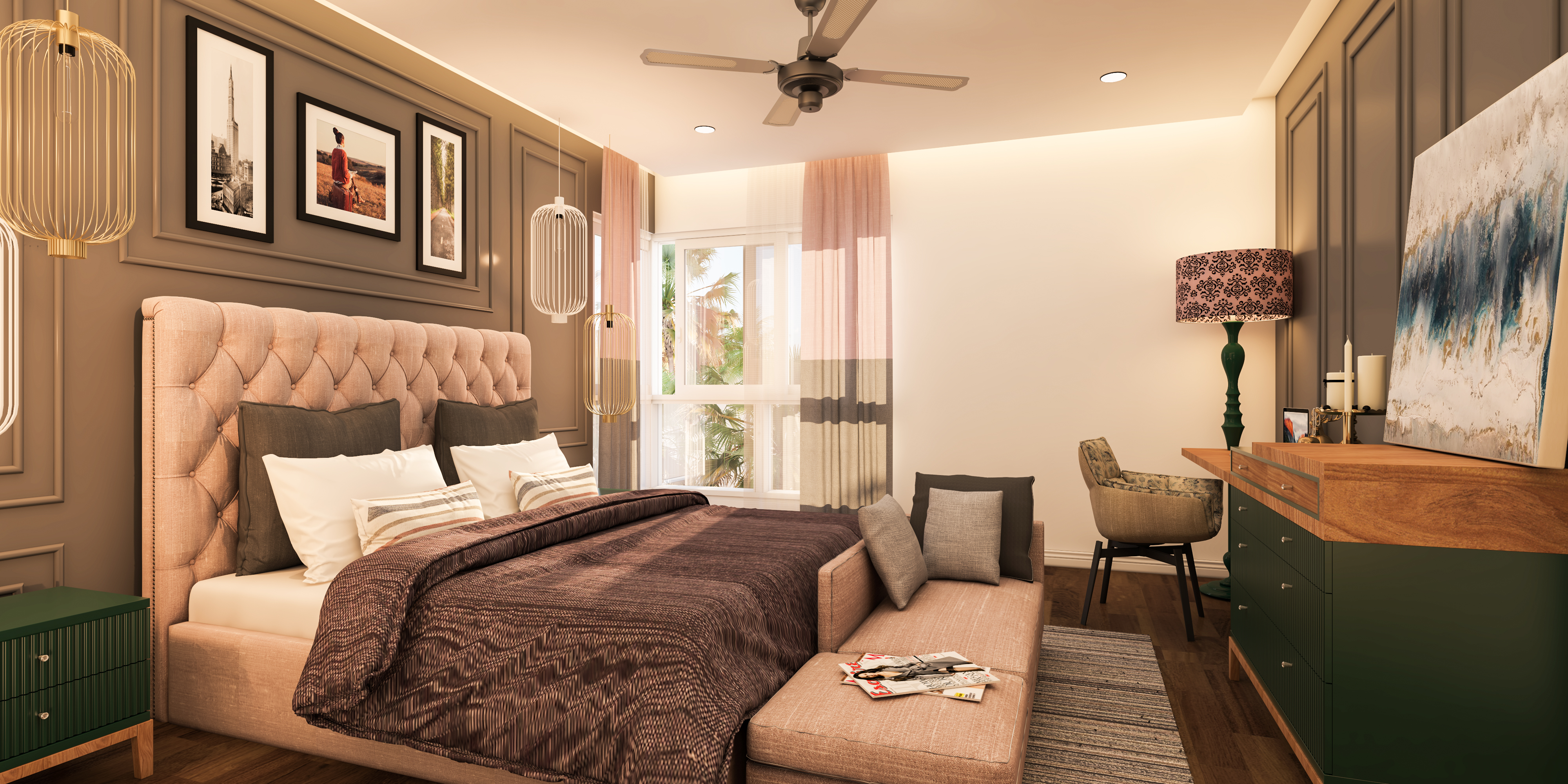 Master bedroom design for a residential interior project in bangalore india. On the theme of contemporary house with English touch. modeled and rendered in 3dsmax 2017