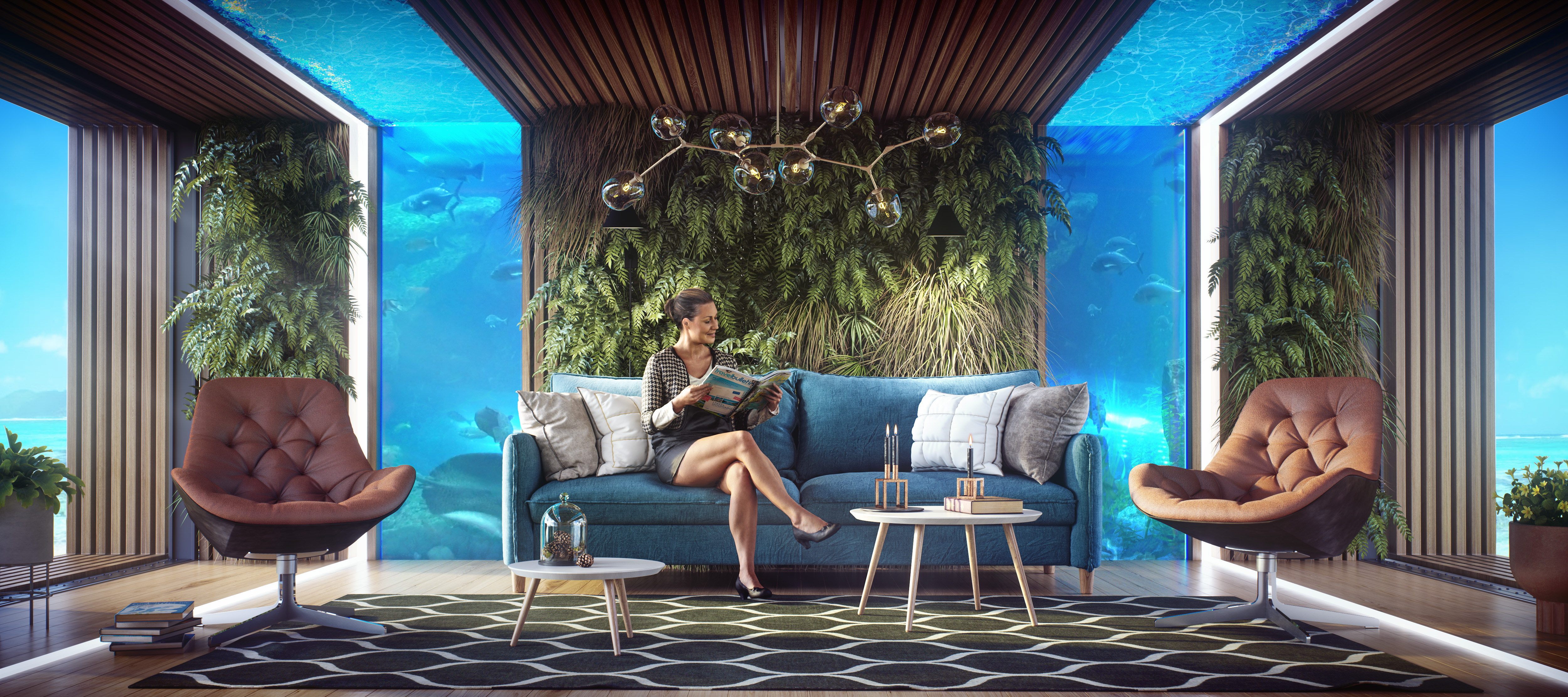 3D Render image done in 3dsmax and Fstorm render for a resolt villas interior.