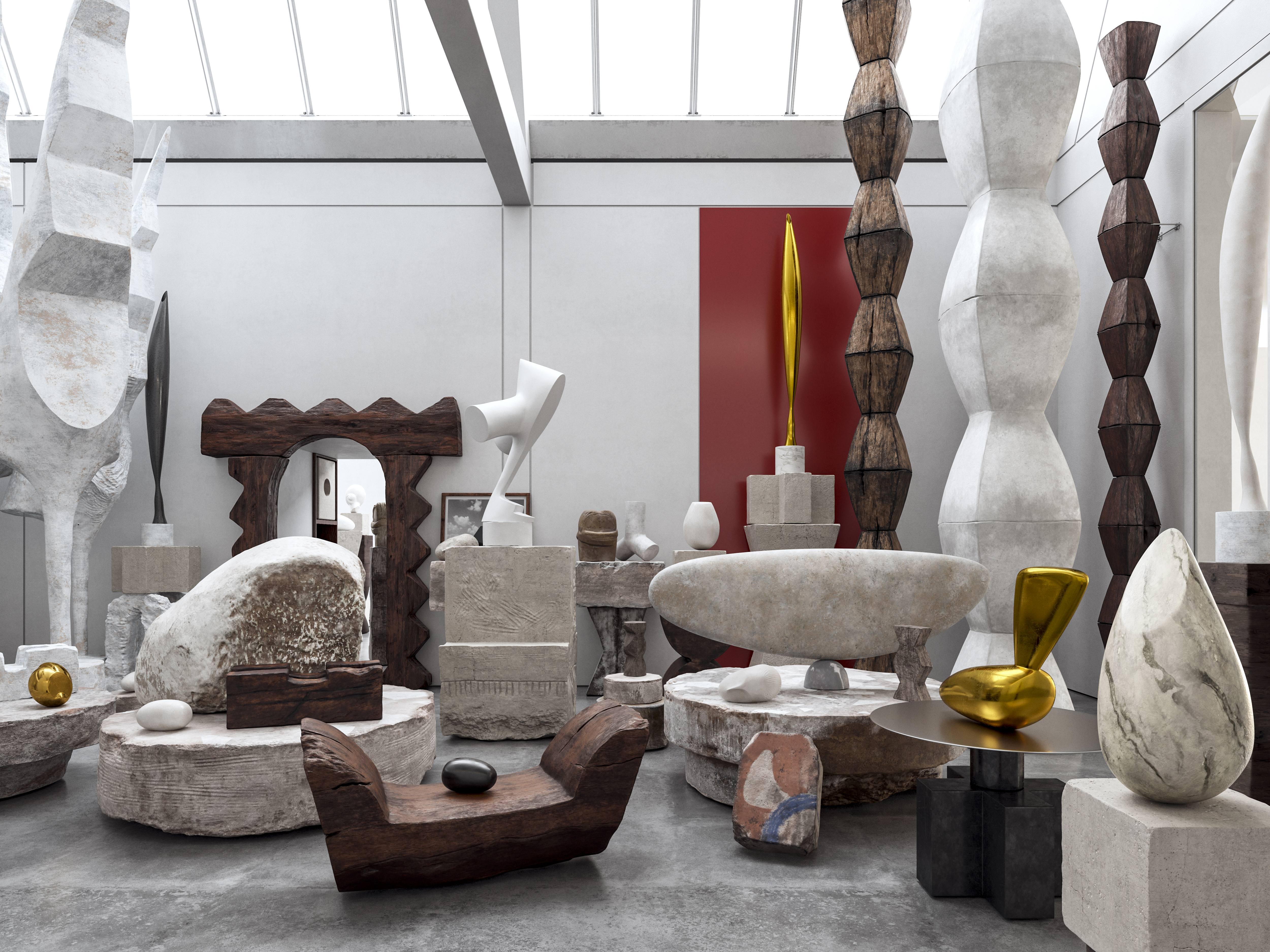 Personal work based on the pieces in Constantin Brancusi“s atelier. Not meant to be an exact and perfect copy, just a guidance. A visual reference used to learn the most basics of Zbrush and a solid and fast workflow between 3dmax, Zbrush and Substance Painter, that allows me to improve the realism in details in architectural visualizations.