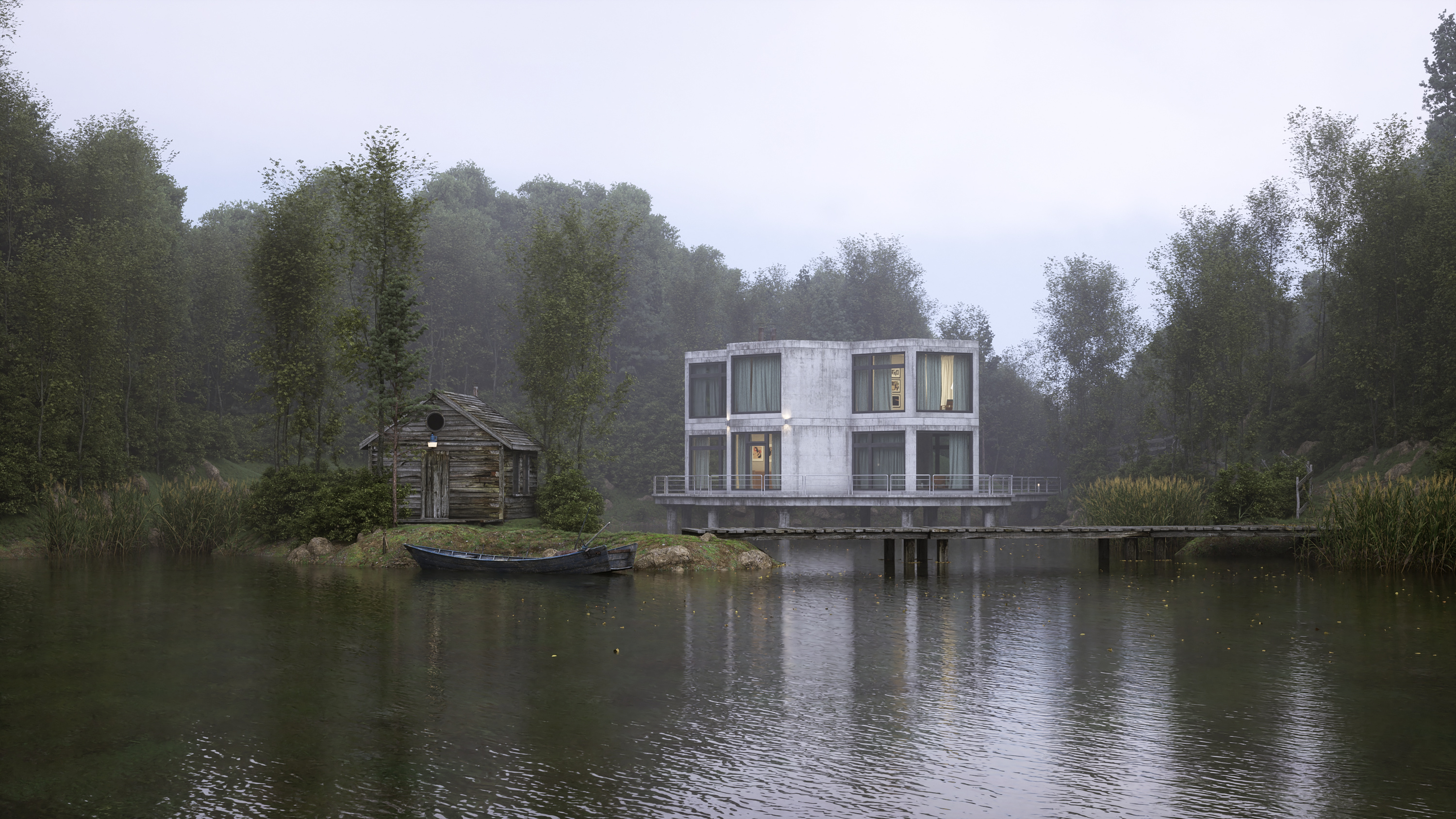 For the fog, this time I used the usual trick, a sphere surrounding the scene with scattering medium material and a sphere around the camera to control the fog depth (more precisely where it starts).