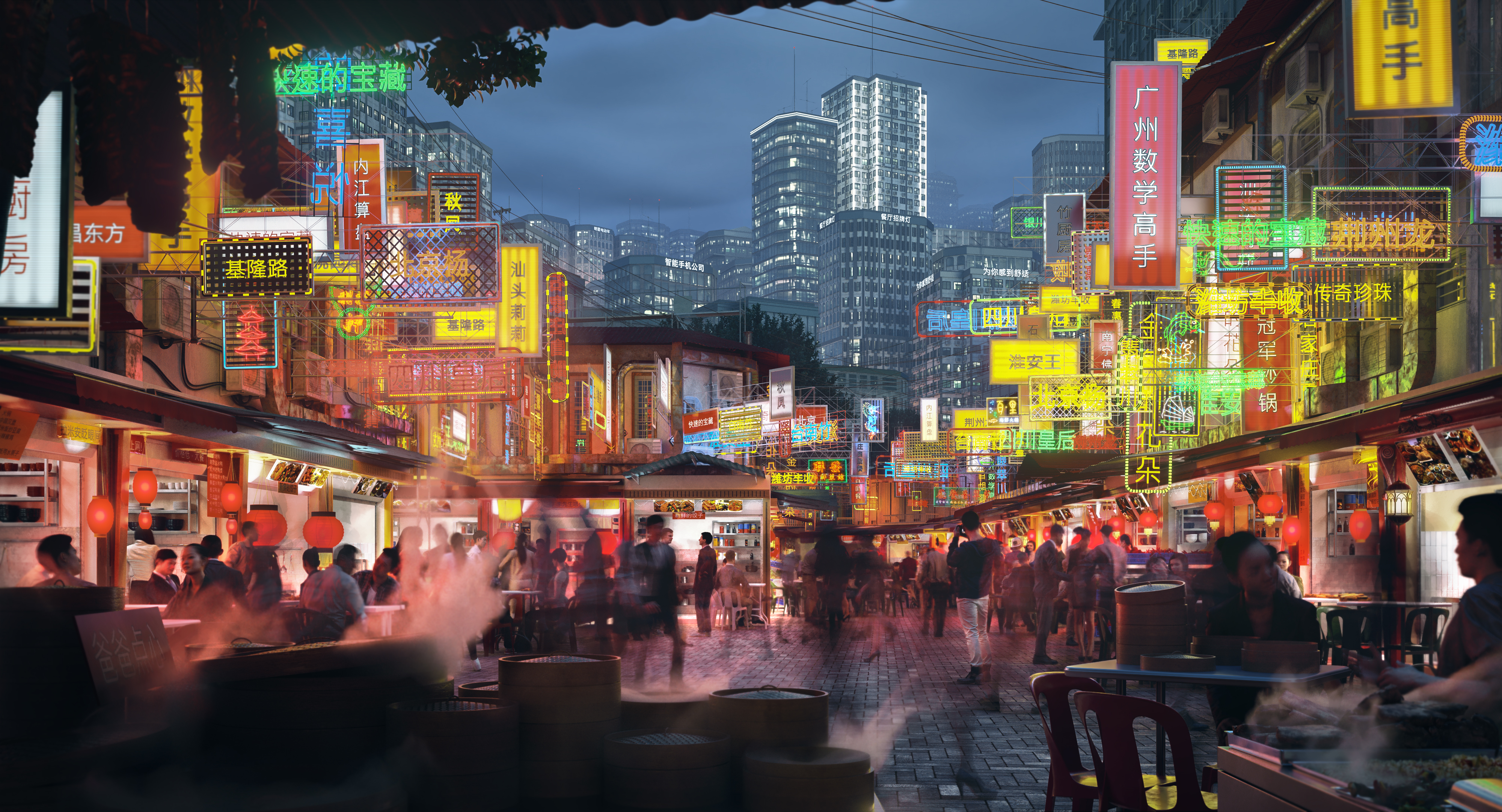 Chinese night street food market.