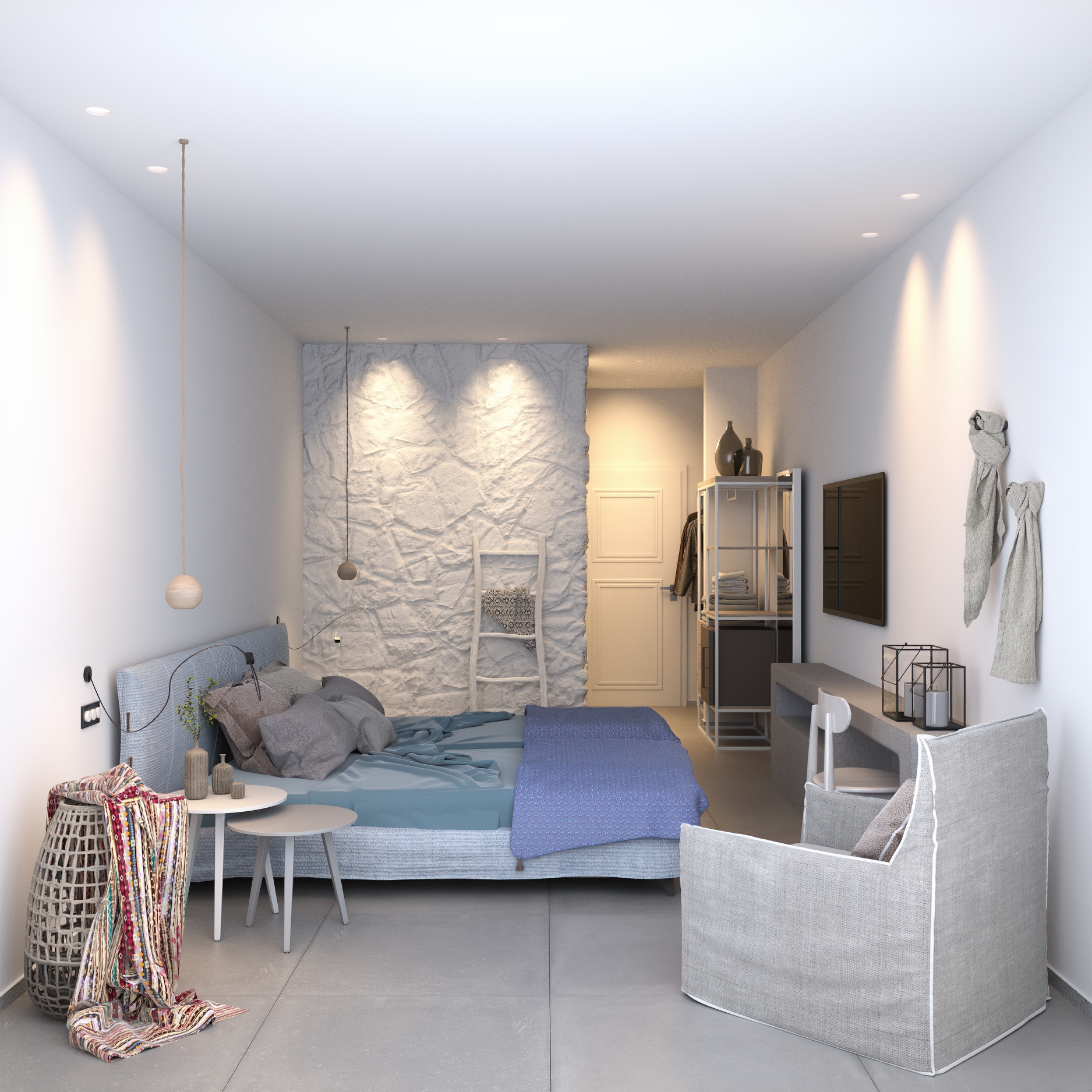 the interior renovation of a hotel in a Greek island.
