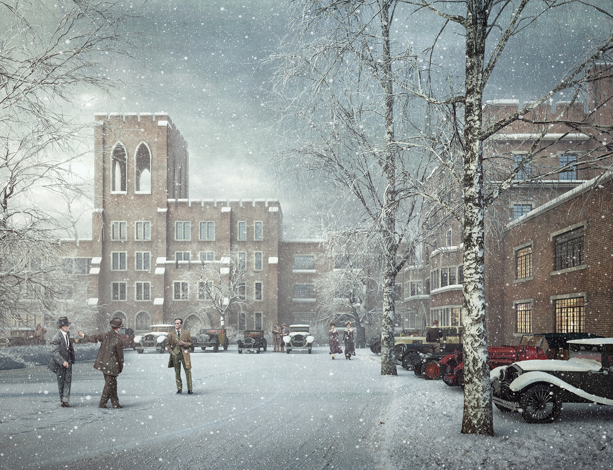 For the people I used colorised photos from the 1920s