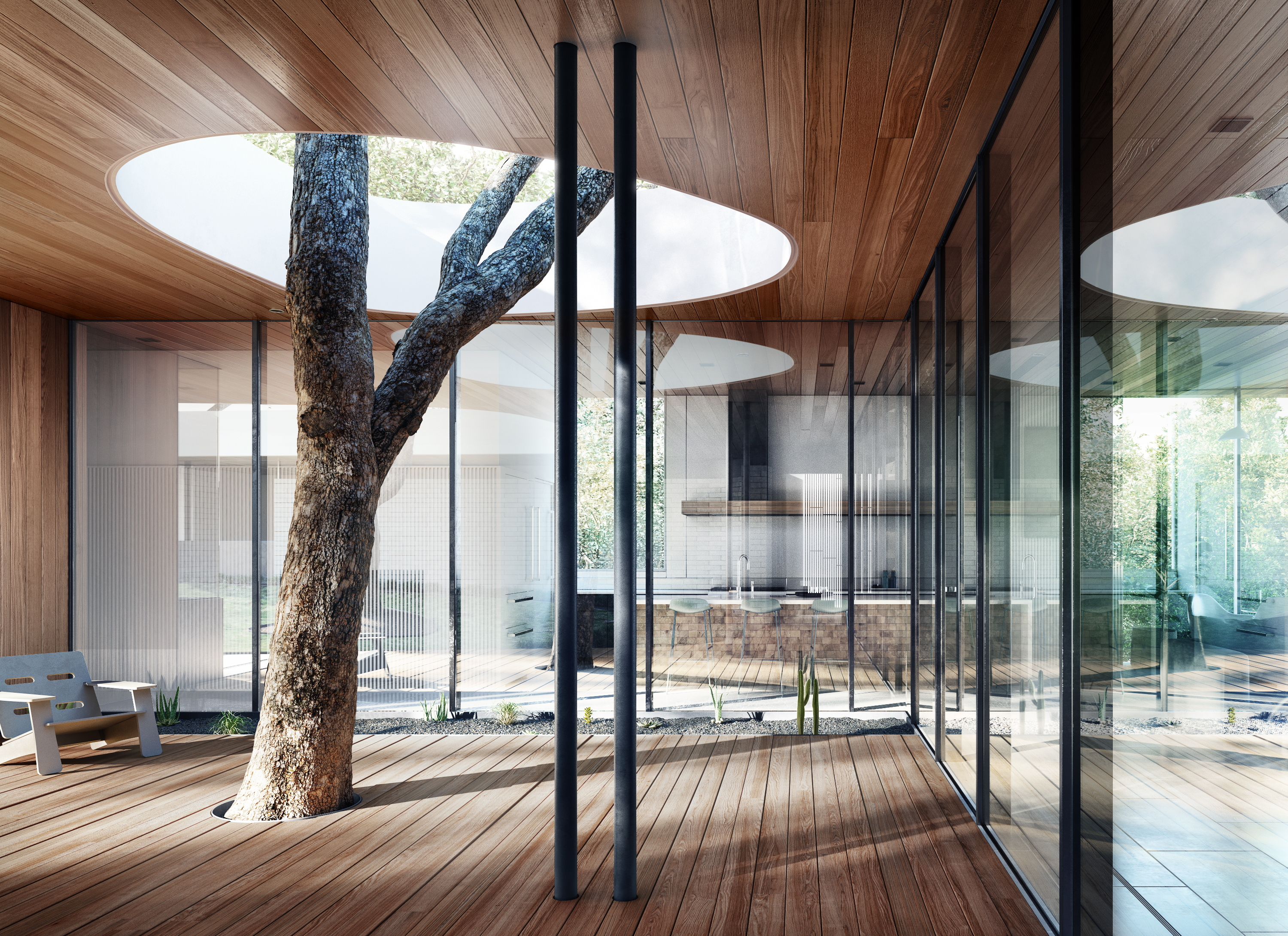 Here’s our first set of CG images of the Constant Springs Residence by Alterstudio Architecture, located in Austin, United States. We made these renderings to train ourselves to replicate lights and colors from a real photo, pushing Cinema 4D and V-Ray over the limits.