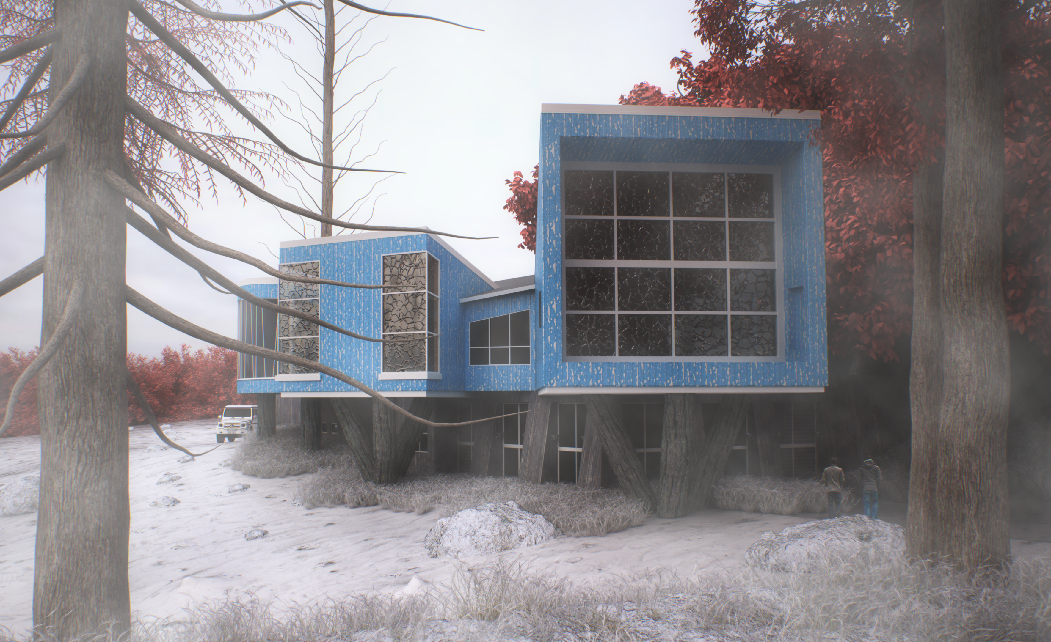 I went for a Nordic winter theme on this one. It was very tricky to find a lighting set-up that would make the architecture look and feel right at home