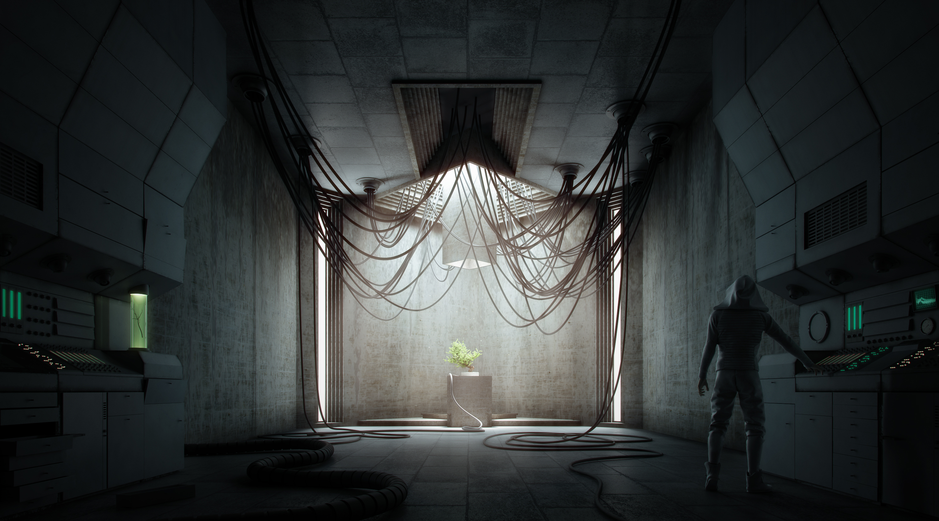 That work is inspired by burtalist building "Tomba Brion" made by Carlo Scarpa. The interpretation key is aimed to inglobe this building in a Sci-fi atmosphere.
