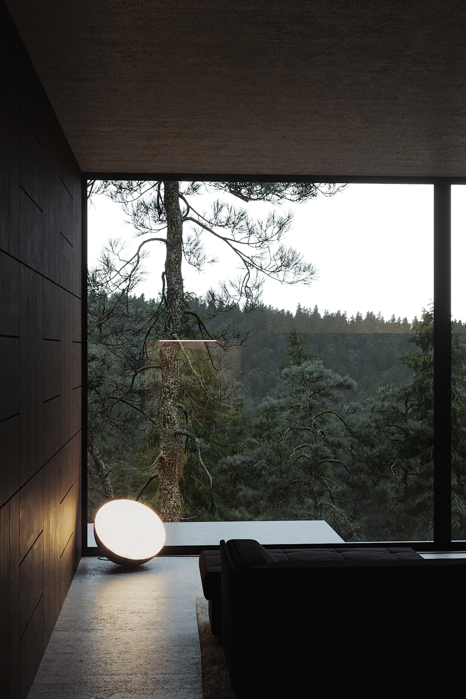 Modern lodge located in the heart of a coniferous forest. All elements of this image are 100% 3D, and I’m responsible for everything except the modelling of the trees. A picture from Pinterest was used as reference.