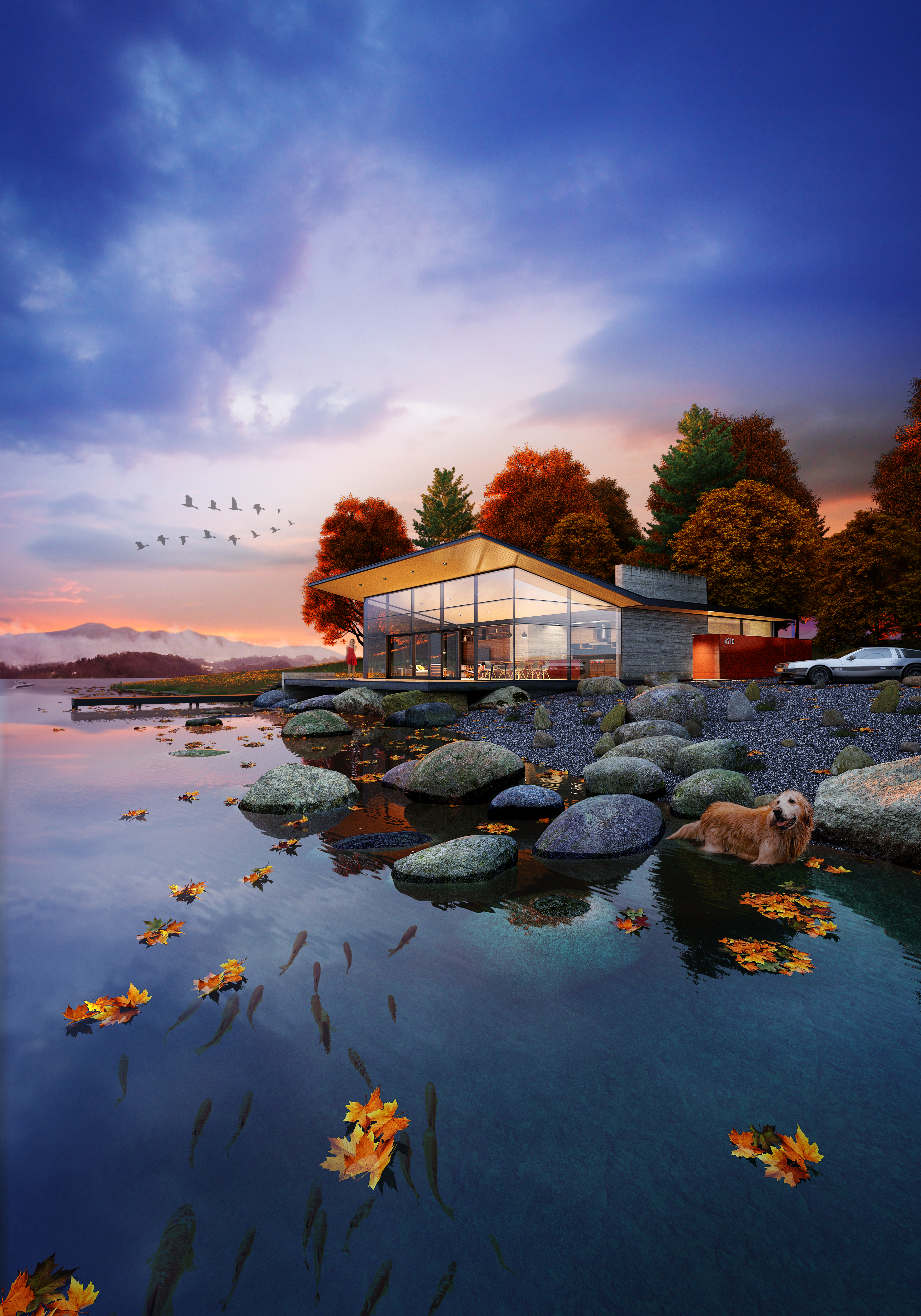 This was commissioned by Future Publishing for the Archviz issue no. 246 of 3D World Magazine in UK. The editor had requested a lake house, during blue hour in the Fall. This house was designed, modeled, and rendered in one week to meet a tight deadline. Everything was done from scratch except the Forest pack assets included in the library to do the landscaping.